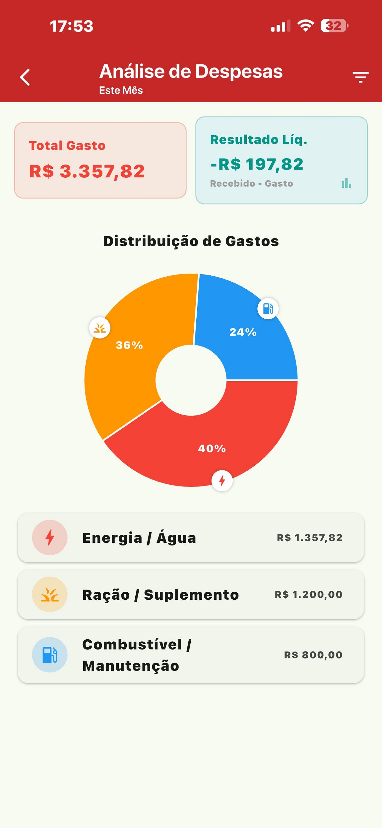 Gráficos Simples: Visualize suas vendas separadas por categorias (Bovinos, Suínos, Aves, etc.) ou detalhada por produto.
